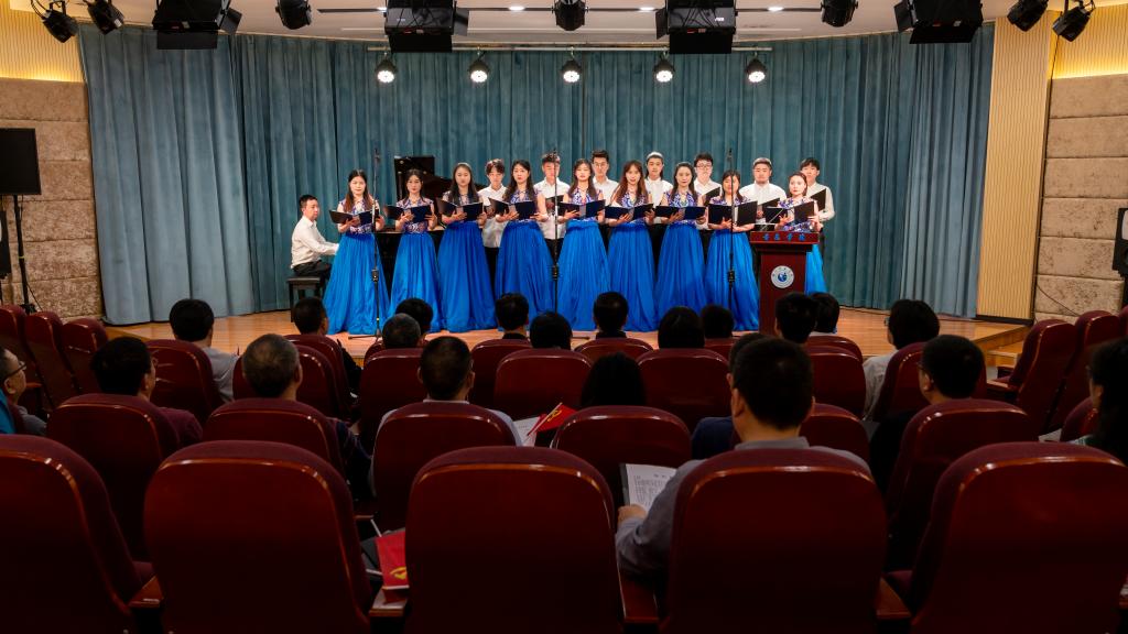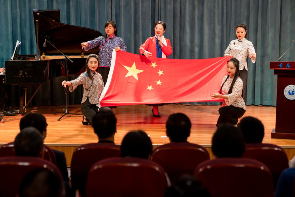 音乐学院党员教师罗谊恒、余薇、李涛、刘芳菁、吴映春带领学生以讲、演、唱结合的形式,通过曲目导赏、史实解说、情景再现、合唱感悟等方式,按照“开天辟地、改天换地、翻天覆地、惊天动地”四个篇章时间序幕,为党委常委班子成员生动讲解了《国际歌》《松花江上》《十送红军》《游击队员之歌》《弹起我心爱的土琵琶》《绣红旗》《英雄赞歌》《我为祖国献石油》《春天的故事》《在希望的田野上》《把一切献给党》《没有共产党就没有新中国》等十余首经典作品。