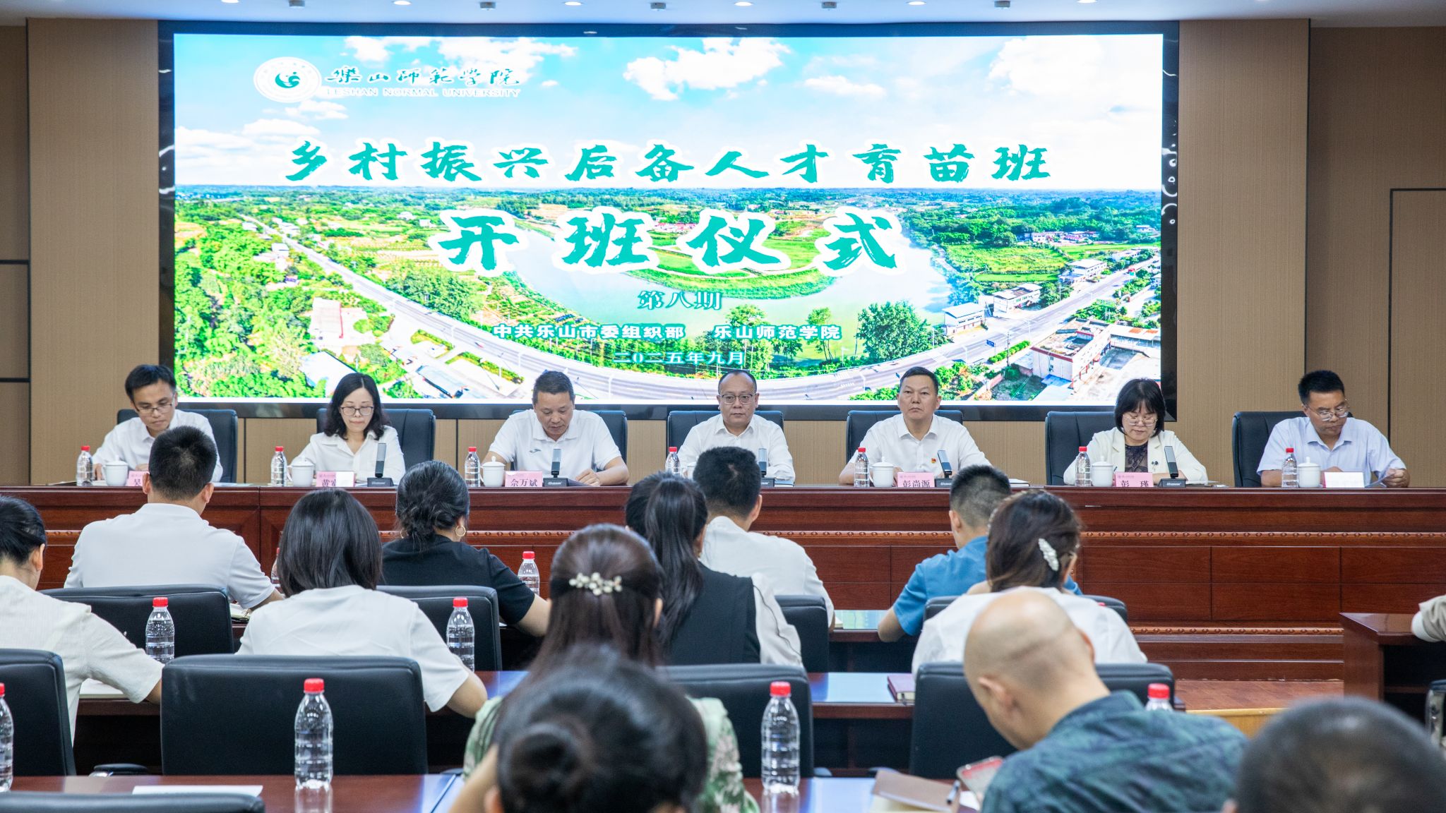 本网讯(文/朱正阳,图/杨爽 )9月25日下午,乐山市委组织部与我校联合开办的“乡村振兴后备人才育苗班”第八期开班仪式在我校弘毅楼第三会议室举行。省纪委监委驻乐山师范学院纪检监察组组长、党委副书记、纪委书记彭尚源出席并致辞,市委组织部副部长、市委老干部局局长、市委党建办主任游全出席开班仪式并讲话。乐山市各县(市、区)党委组织部、高新区管委会机关党委相关领导,市委组织部相关科室负责同志,我校党委学生工作部、教学部、教师教育学院、创新创业学院相关负责人,教学院党委书记、院长、党委委员代表,产业导师、创业导师代表,以及第八期全体学员参加仪式。仪式由学校党委常委、组织部部长佘万斌主持。